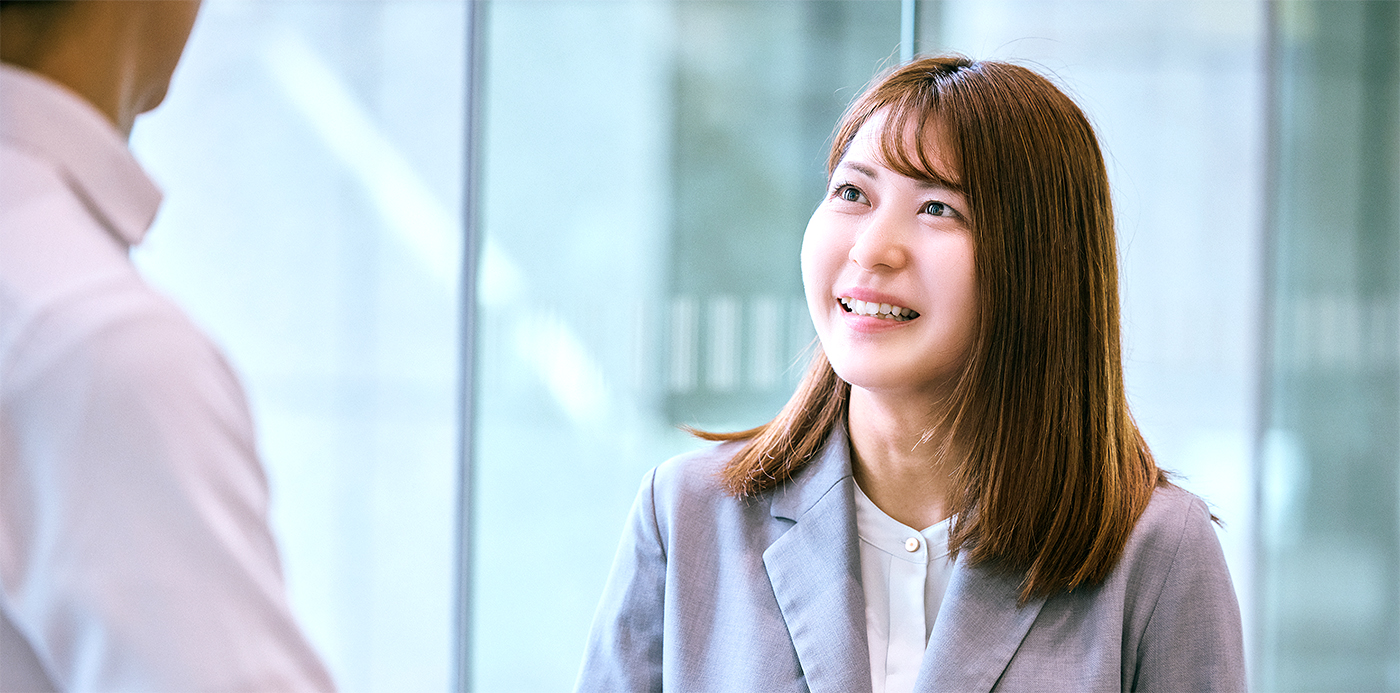 「BtoC営業では、決められた商品を扱うからこそ、その魅力を最大限に引き出し、お客さまに最適な形で伝えることがミッションでした。ソリューション事業では、企業さまの課題をともに解決することがミッションであり、それを実現するために仕組みをどうするか、どういう組み合わせにすれば、その企業さまにとって最大のパフォーマンスを発揮できるのか、丁寧な対話を通じて共創していくアプローチが必要となります。現場視点のアイデアを企画や商品開発のチームに伝え、ニーズを反映した商品開発に繋げるなど、企業さまごと、案件ごとに柔軟な発想で取り組めるところに、事業としての可能性を感じています」
